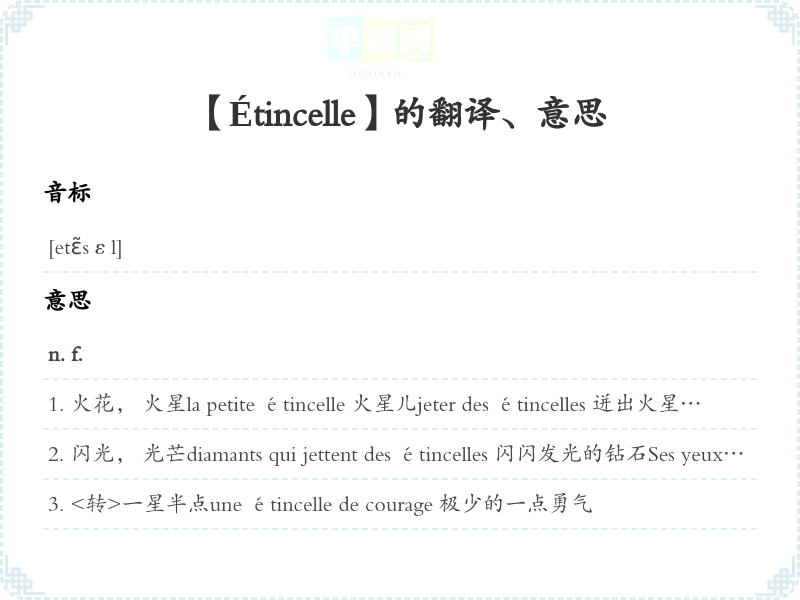 【Étincelle】是什么意思、字义解释