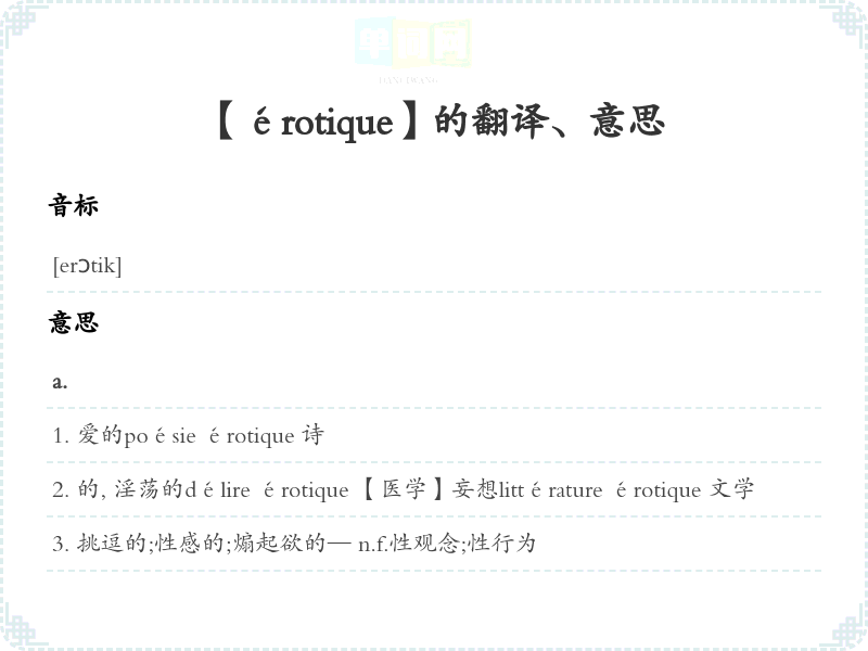 【érotique】是什么意思、字义解释