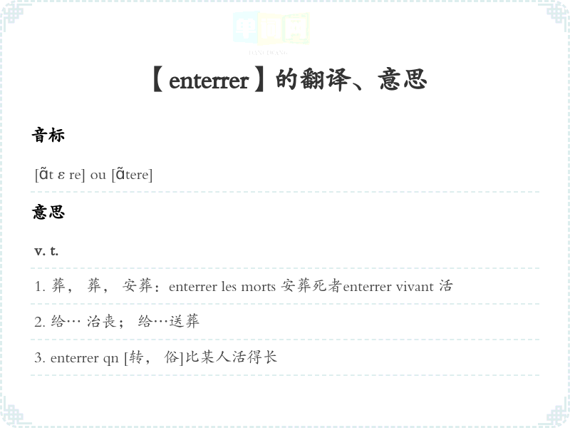 葬, 葬, 安葬:enterrer les morts 安葬死者enterrer vivant 活