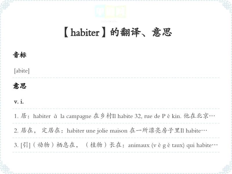 【habiter】是什么意思、字义解释