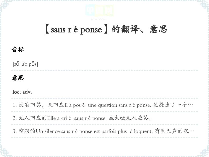 没有回答,未回应Il a posé une question sans réponse. 他提出了一个没有回答的问题。