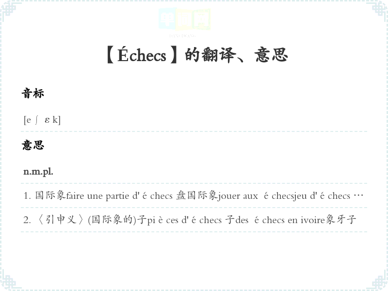 【Échecs】是什么意思、字义解释
