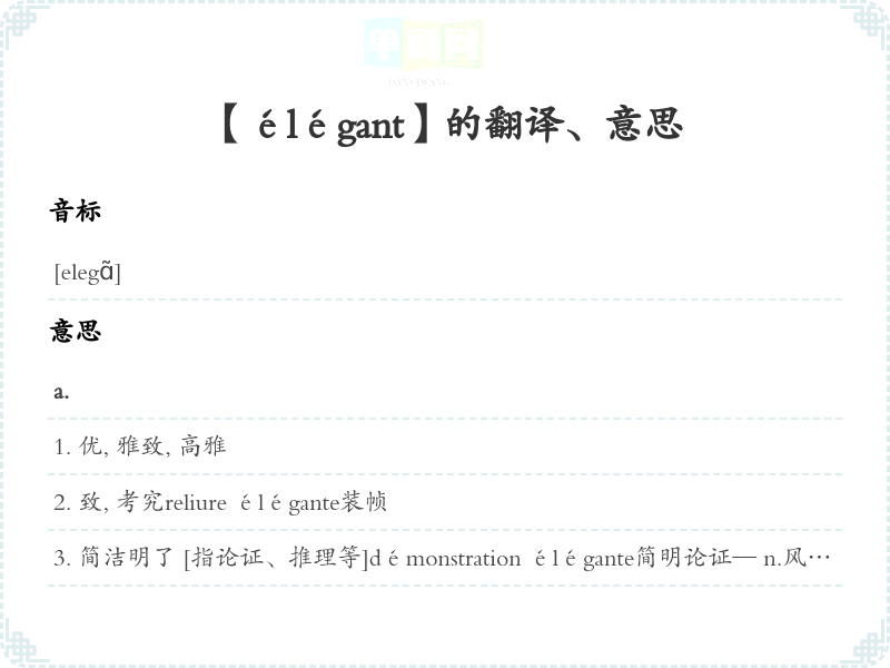 【élégant】是什么意思、字义解释