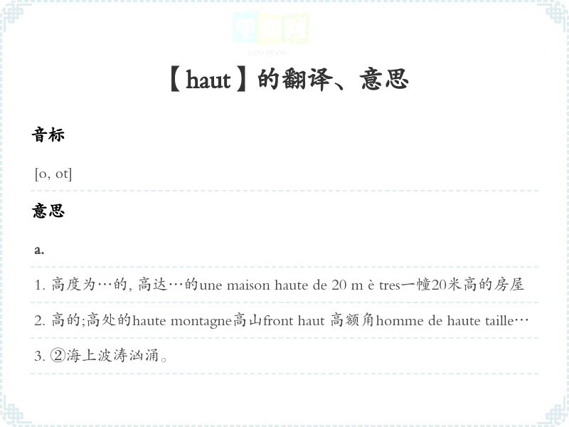 【haut】是什么意思、字义解释