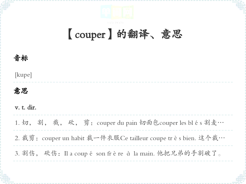 【couper】是什么意思、字义解释
