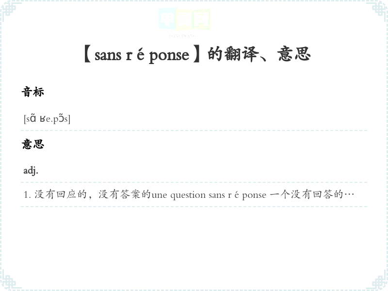 【sans réponse】是什么意思、字义解释