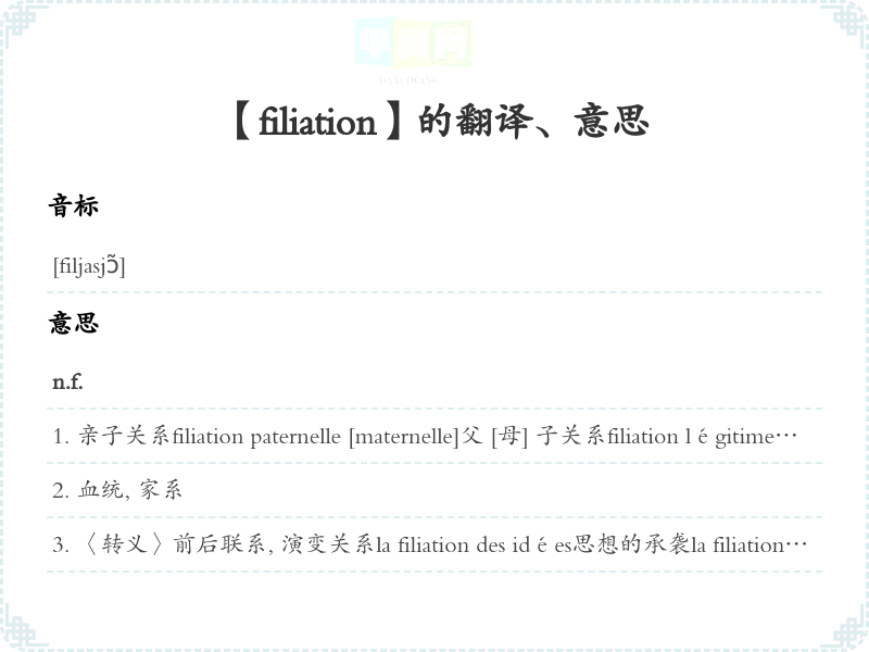 【filiation】是什么意思、字义解释