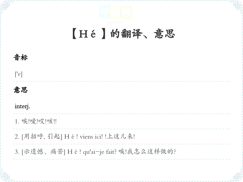 [随声调的不同, 分别示赞同、欣赏、嘲笑、讽刺等语气]Hé! Hé!唉!唉!Hé oui!嗳, 就是!