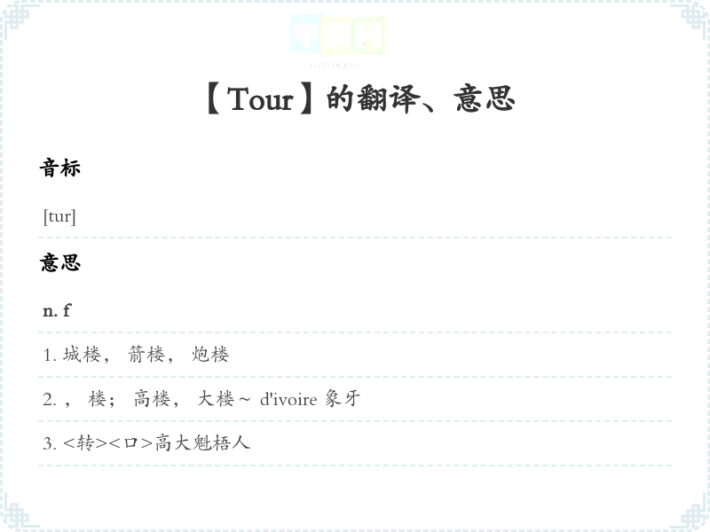 【Tour】 派生:、 名词变化:、 形容词变化:、 近义词、 同音、近音词 联想词