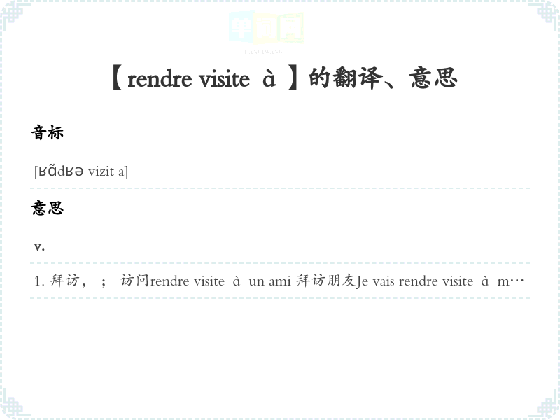 【rendre visite à】 助记:、 词根:、 联想、 名词化:、 词化:、 形容词化:、 近义词、 反义词、 同音、近音词 联想词