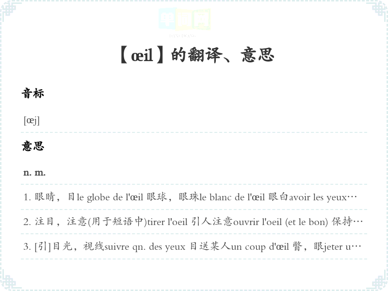 【œil】是什么意思、字义解释