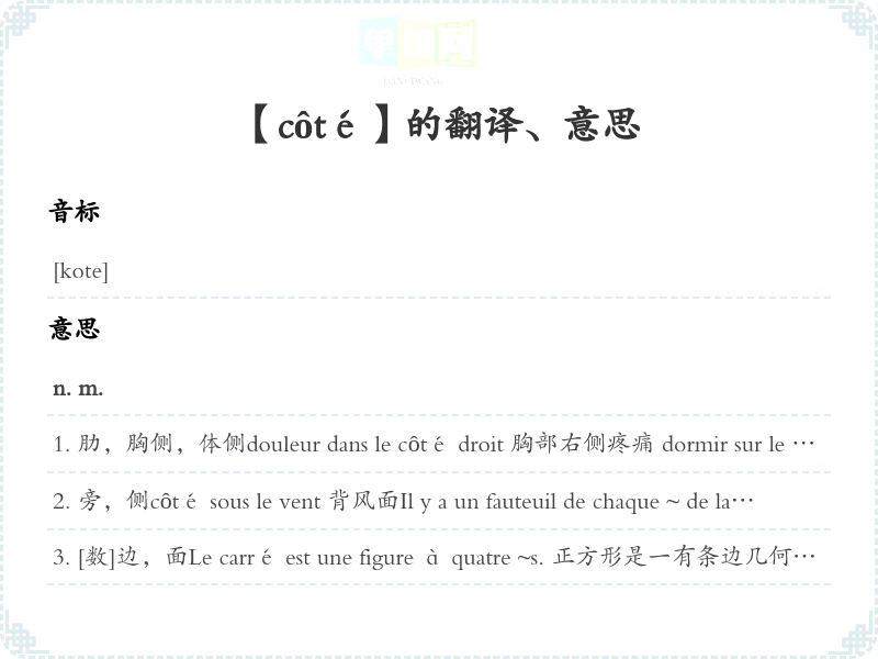 【côté】是什么意思、字义解释