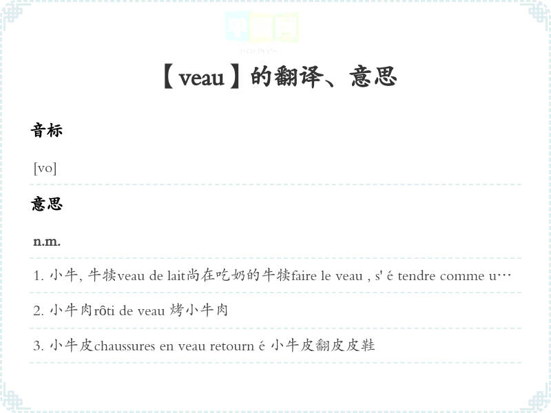 【veau】是什么意思、字义解释
