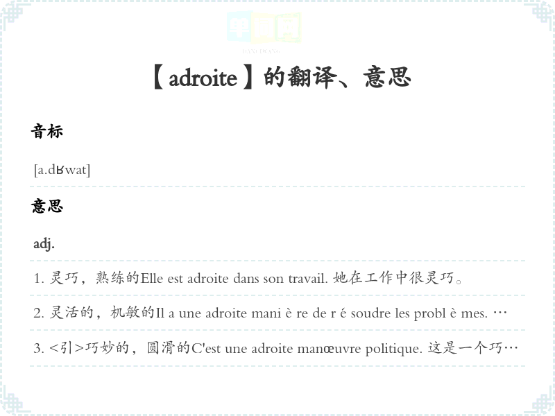 【adroite】是什么意思、字义解释