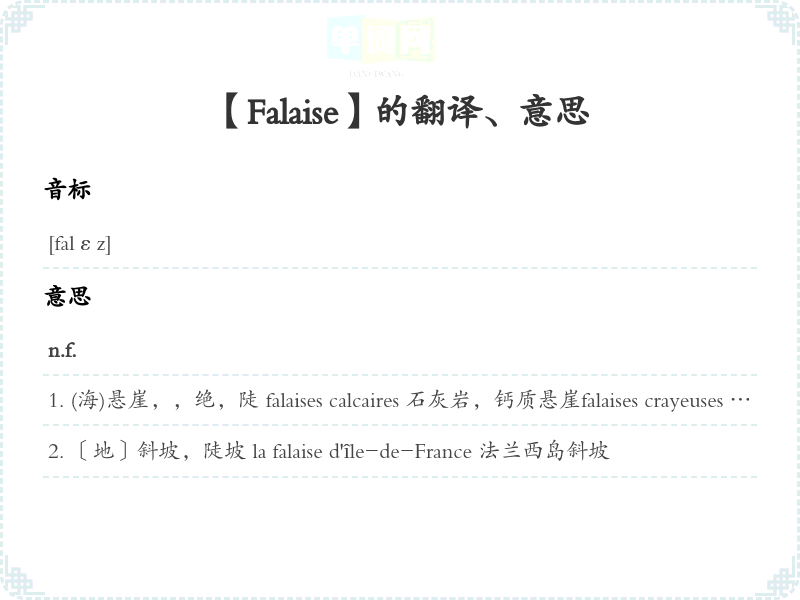 【Falaise】是什么意思、字义解释