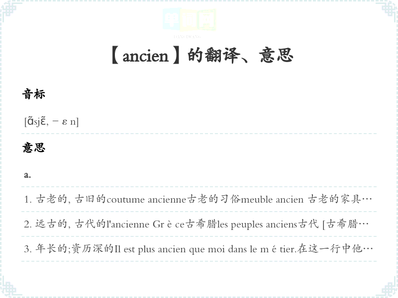 【ancien】是什么意思、字义解释