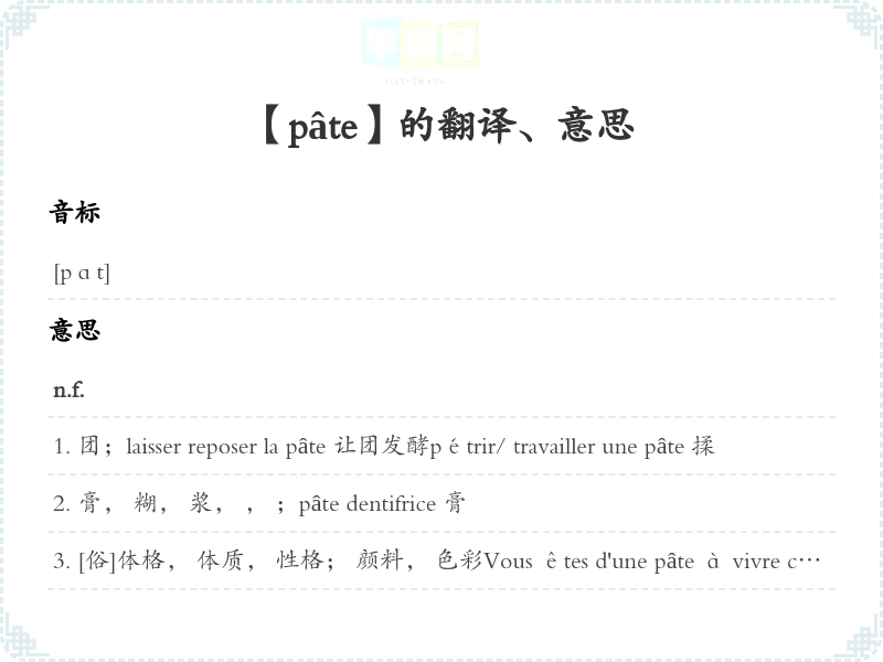 【pâte】是什么意思、字义解释