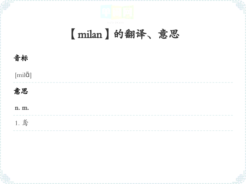 【milan】是什么意思、字义解释