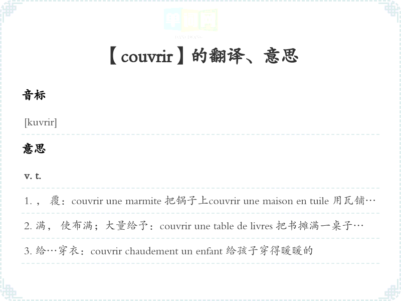【couvrir】是什么意思、字义解释