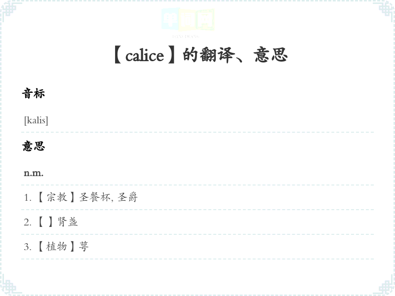 【calice】是什么意思、字义解释