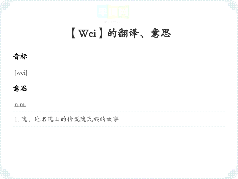 - Wei is an ancient place name.