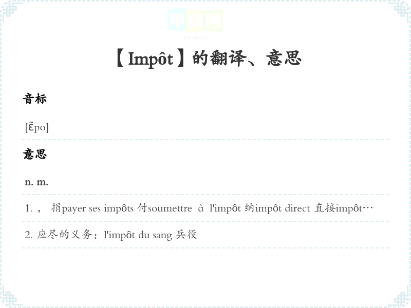 【Impôt】是什么意思、字义解释