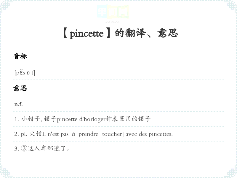 【pincette】是什么意思、字义解释