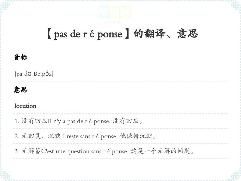 无回复,沉默Il reste sans réponse. 他保持沉默。
