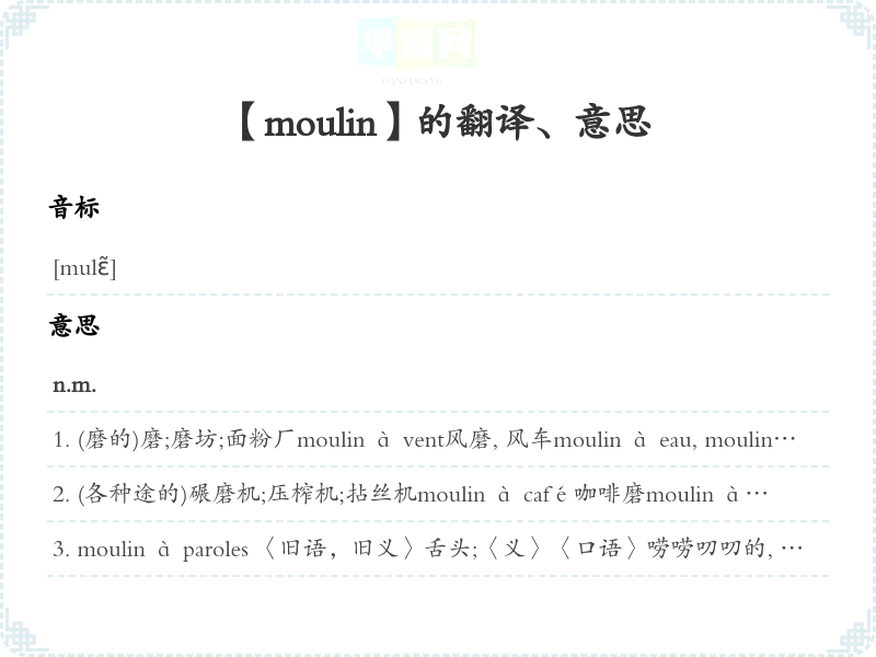【moulin】是什么意思、字义解释