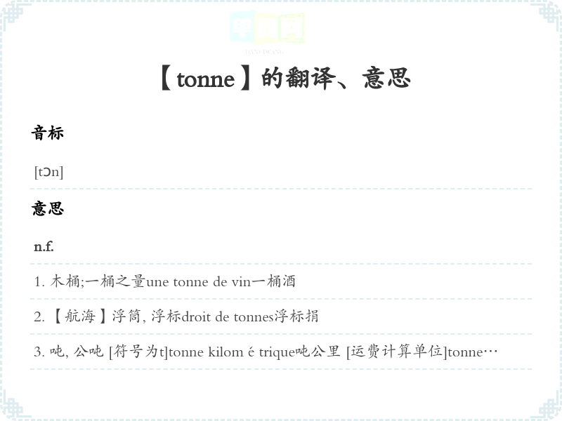 【tonne】是什么意思、字义解释