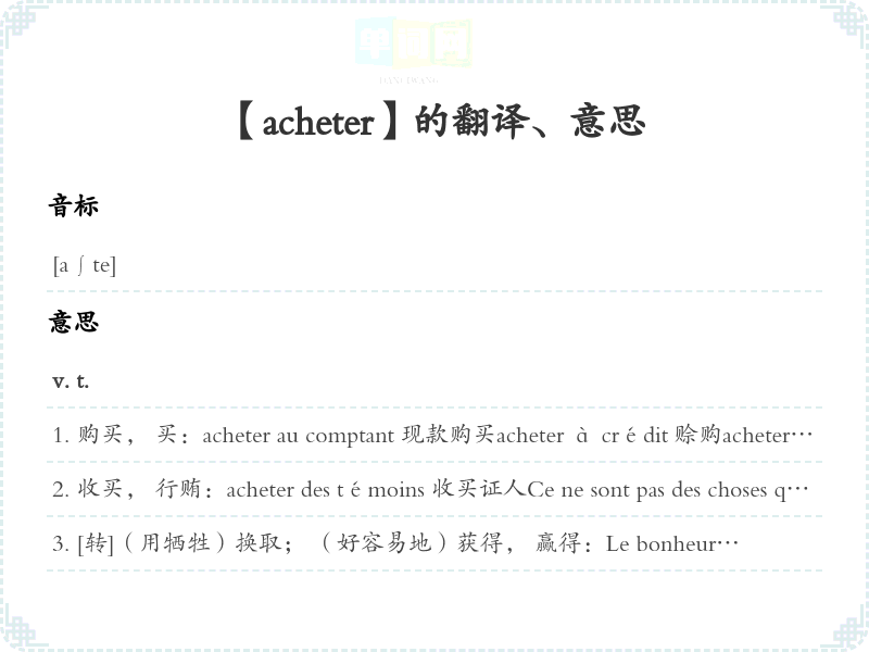 【acheter】是什么意思、字义解释