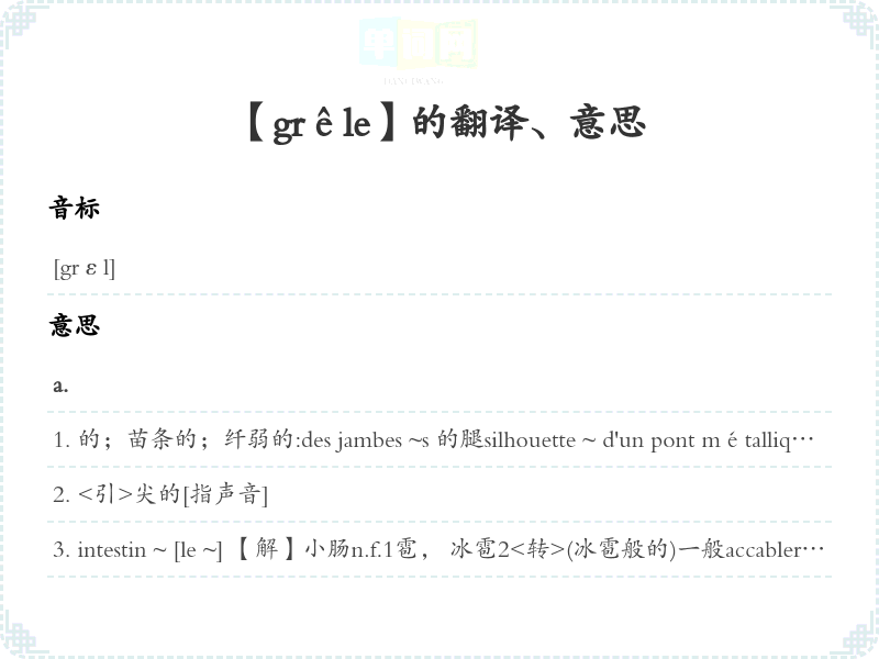 【grêle】 联想:、 近义词:、 反义词: 联想词