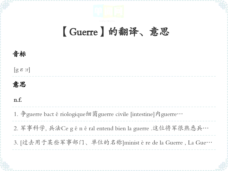 【Guerre】 联想:、 近义词:、 反义词: 联想词