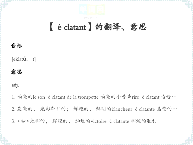 【éclatant】 联想:、 词化:、 近义词:、 反义词: 联想词