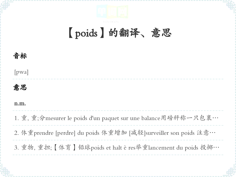 【poids】是什么意思、字义解释