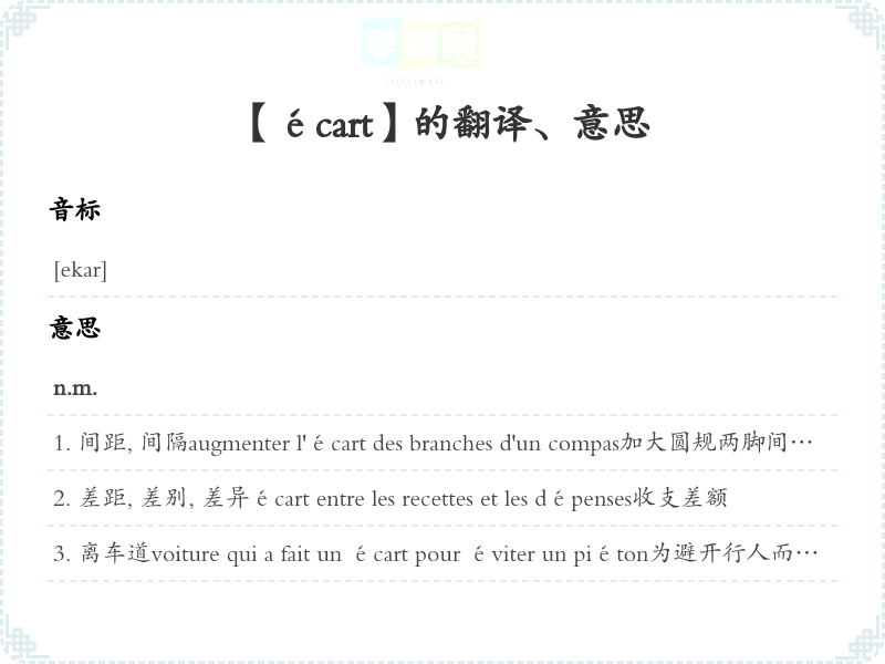 【écart】是什么意思、字义解释