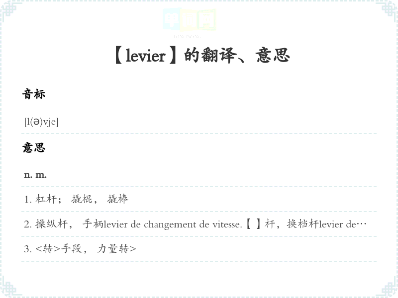 【levier】是什么意思、字义解释