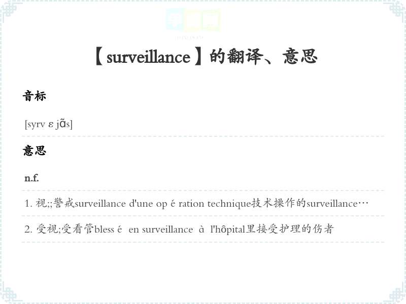 【surveillance】是什么意思、字义解释