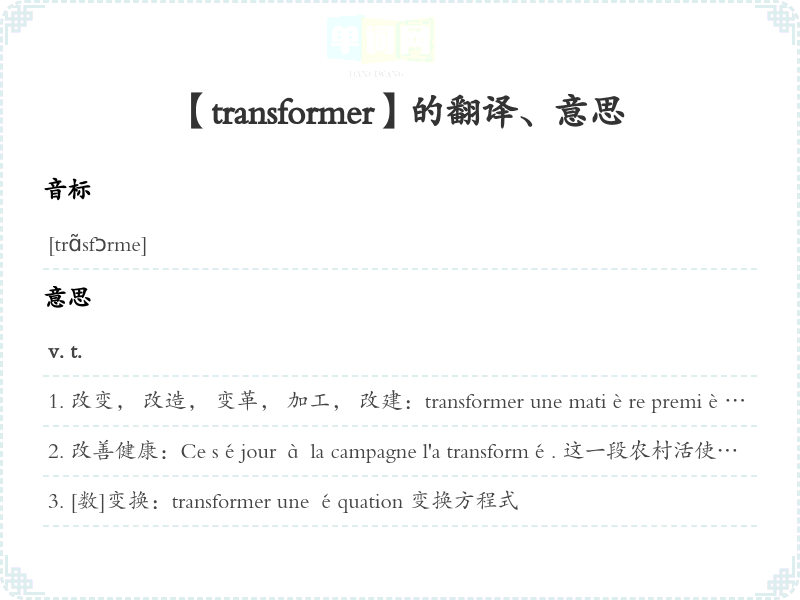 【transformer】 :、 近义词:、 反义词: 联想词
