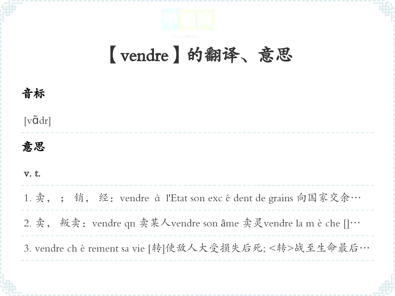 【vendre】是什么意思、字义解释
