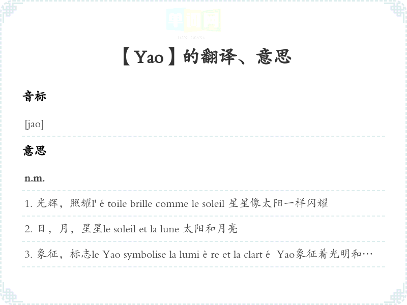象征,标志le Yao symbolise la lumière et la clarté Yao象征着光明和清晰