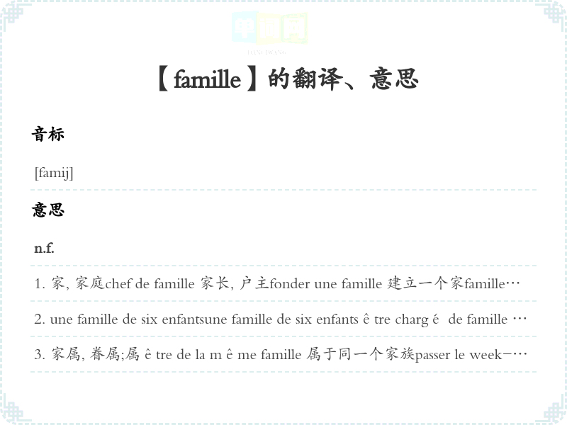 【famille】是什么意思、字义解释