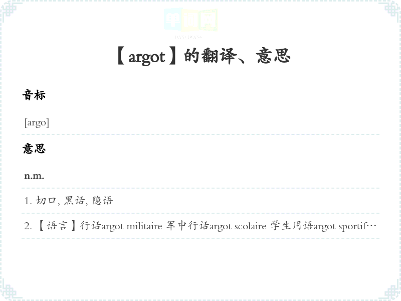 【argot】是什么意思、字义解释