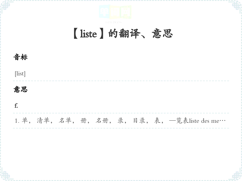 【liste】是什么意思、字义解释