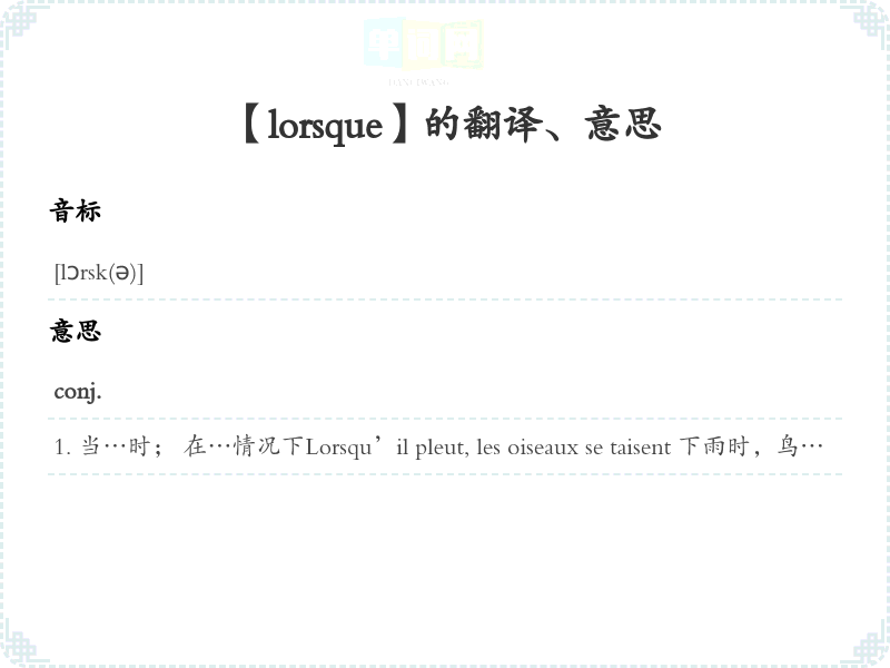 当…时; 在…情况下Lorsqu’il pleut, les oiseaux se taisent 下雨时,鸟儿们都静下来了