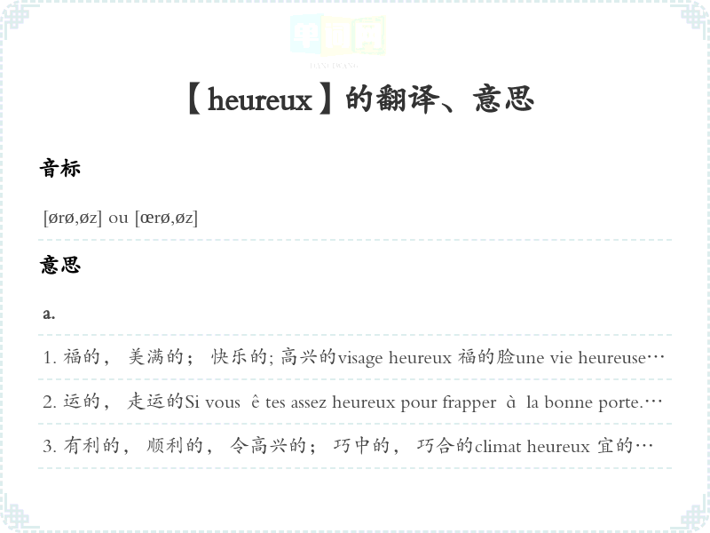 【heureux】是什么意思、字义解释