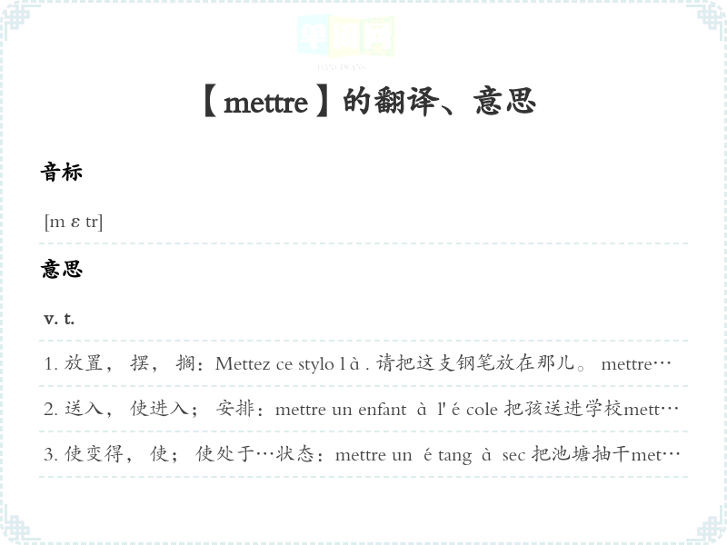 【mettre】是什么意思、字义解释