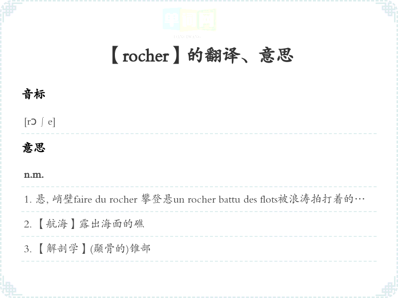 【rocher】是什么意思、字义解释