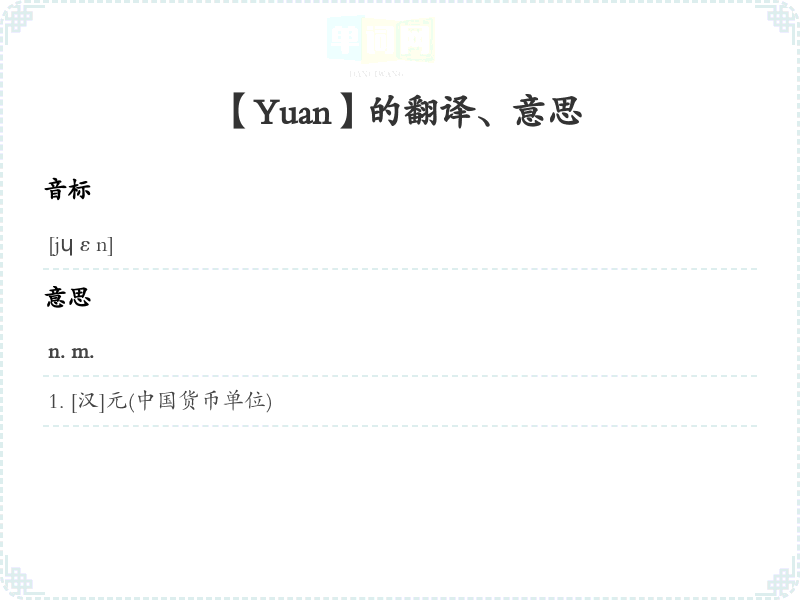【Yuan】是什么意思、字义解释