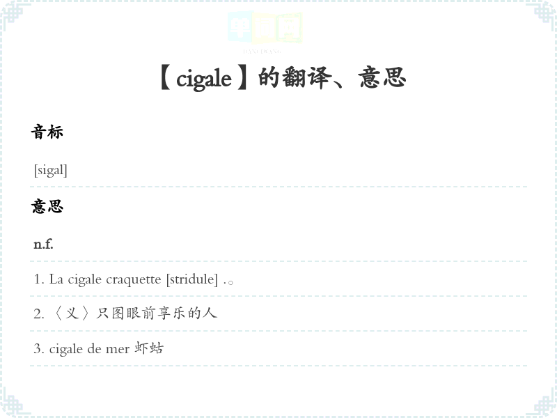 【cigale】是什么意思、字义解释